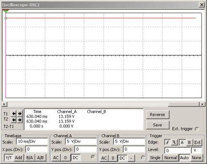 The value of the capacitor shouldn’t be very small, otherwise it will not be effective in reducing the ripple to the required extent. Choosing an appropriate value can result in a very smooth DC output. In the image given below, you can see that 100uF capacitor works perfect with this circuit giving a perfectly smooth DC output. You can try simulating using a 100nF or other lesser valued capacitor, you will find the ripples which can be used to study the charging and discharging operations of the capacitor. The output waveforms are shown below: